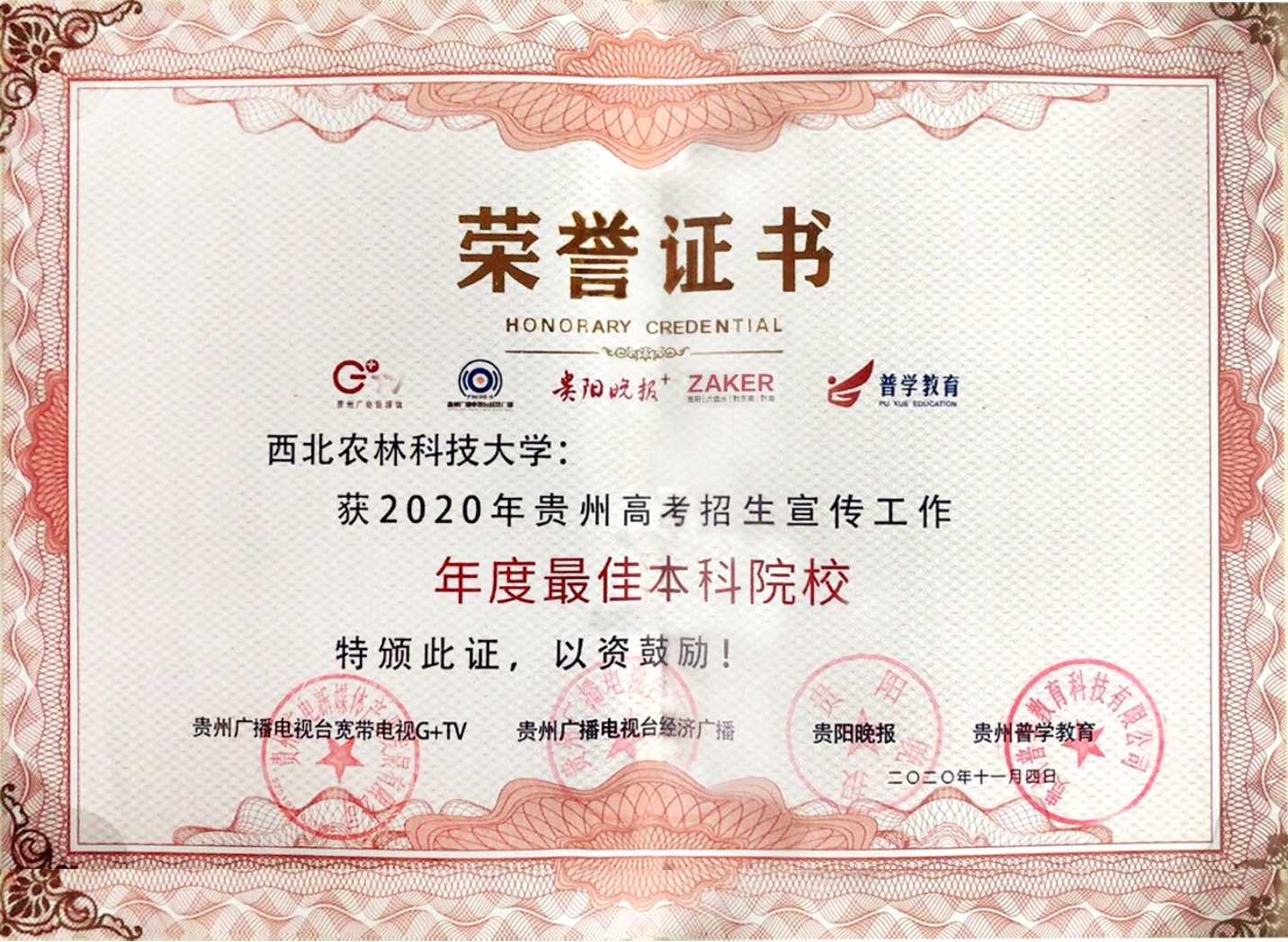 获贵州省市媒体办法的招生宣传优秀单位荣誉称号